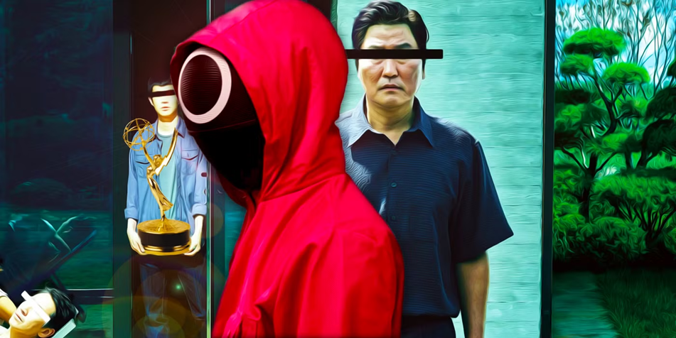 The living room has black-gold-purple striped walls and white curtains with large red strawberries on them. A steel holder for an oversized television sticks out of the wall like stranded ammunition. The previous tenants were Korean. Their style more ‘Squid Game’ than ‘Parasite’.